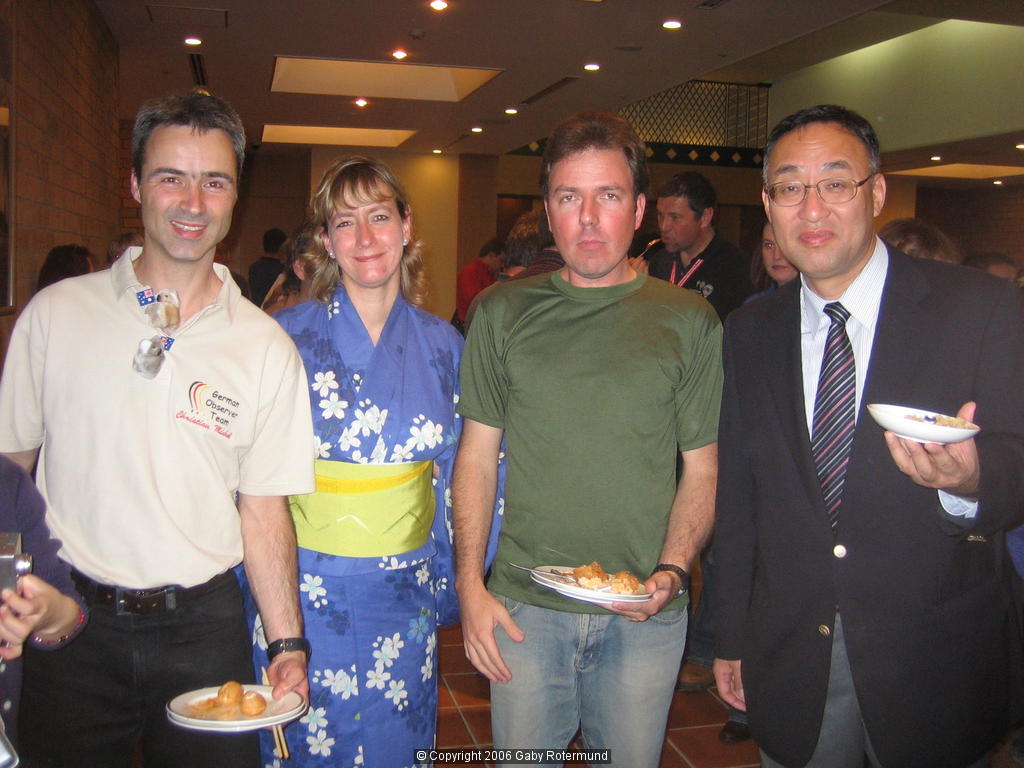 with the Motegi mayor and, more important, with Christian and Leo at the award ceremony Photo date/time: 2006-11-26 12:49:33 Photographer: Gaby Rotermund 800x600 (79911 Bytes) 1024x768 (115937 Bytes) 2048x1536 (891562 Bytes) Action: Delete Edit comment Rotate clockwise Rotate counterclockwise | with the official Motegi kimono girl Photo date/time: 2006-11-26 12:52:28 Photographer: Gaby Rotermund 800x600 (88391 Bytes) 1024x768 (131217 Bytes) 2048x1536 (942400 Bytes) Action: Delete Edit comment Rotate clockwise Rotate counterclockwise | Cookie the last night and heaven help me when she gets to Europe! Photo date/time: 2006-11-26 13:07:01 Photographer: Wendy Creed 600x800 (54878 Bytes) 768x1024 (88185 Bytes) 1544x2080 (454152 Bytes) Action: Delete Edit comment Rotate clockwise Rotate counterclockwise | Nice flag Photo date/time: 2006-11-26 13:56:22 Photographer: Mira Paskota 600x800 (115913 Bytes) 768x1024 (170862 Bytes) 1536x2048 (980636 Bytes) Action: Delete Edit comment Rotate clockwise Rotate counterclockwise |